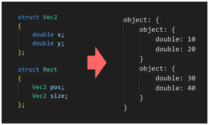 今のところ、メンバ変数にユーザー定義型のメンバ変数が含まれる場合、再帰的に列挙してくれません。例えば次のような構造体 Rect は列挙できません。どぎついエラーでしばかれます。
